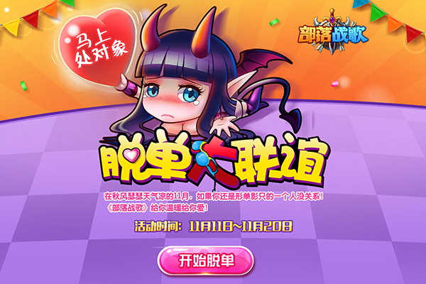 《部落战歌》史上最大的光棍节联谊会即将来袭,各色妹子等你来,礼品拿到手抽筋,各位亲爱的小伙伴还不快来《部落战歌》的世界里“脱光”!