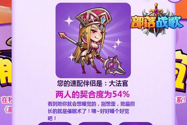 在《部落战歌》大陆中,有着无数美丽or帅气的英雄们,他们有的高冷傲娇,有的呆萌可爱,有的妩媚动人,有的英俊高大。但无论是哪种类型的英雄,在光棍节这天都会响应国王的号召,前来陪玩家们一起欢度光棍节,找寻心仪的对象。玩家会通过速配的方式得到与你匹配度最高的异性英雄,之后你就可以与这位英雄花前月下,谈天说地啦!