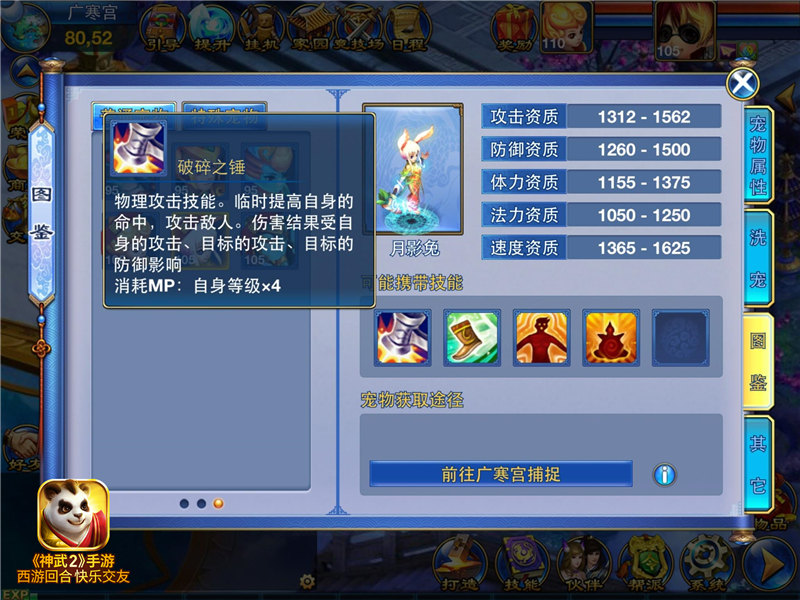 吸收月华而成精的月影兔是广寒宫寂寞的主人和女官们忠实的伙伴,天性活泼乐观的他们是天庭的开心果。月影兔实力强大,萌萌的外型必将收到玩家喜爱。