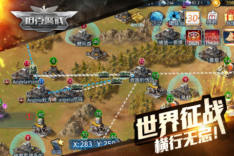 不同于单机策略游戏,《坦克警戒》更加注重玩家之间的沟通交流。为了实现玩家之间的实时沟通,游戏中加入时间和空间概念,在大地图上,每个玩家的游戏行动清晰可见,既可派战队援助盟友,也可直接进攻敌方基地围魏救赵。“滴滴打人”、“发红包”、植入KK语音,各种系统让玩家共处同一社区当中,玩家的每个行动将产生蝴蝶效应,联动其他玩家作出反应,让玩家在社区强交互中依然可以缔结兄弟情!