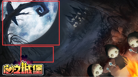 总体来看,暗夜之中的荒野和孤堡阴森可怖,而“法力无边”的骷髅先森却是笑点无数,画面右下角的那三位小正太更是so卡哇伊,让人有捏脸的冲动。恐怖的环境和呆萌的人物形成了强烈的反差,不但不会使人感到害怕,反而使整个画面透露出与众不同的谐趣,明显是在卖萌!以描绘暗黑来拒绝暗黑,原画师们巧妙地地凸显出了《心之城堡》拒绝暗黑的浪漫童话风格,是在让人点赞不止~
