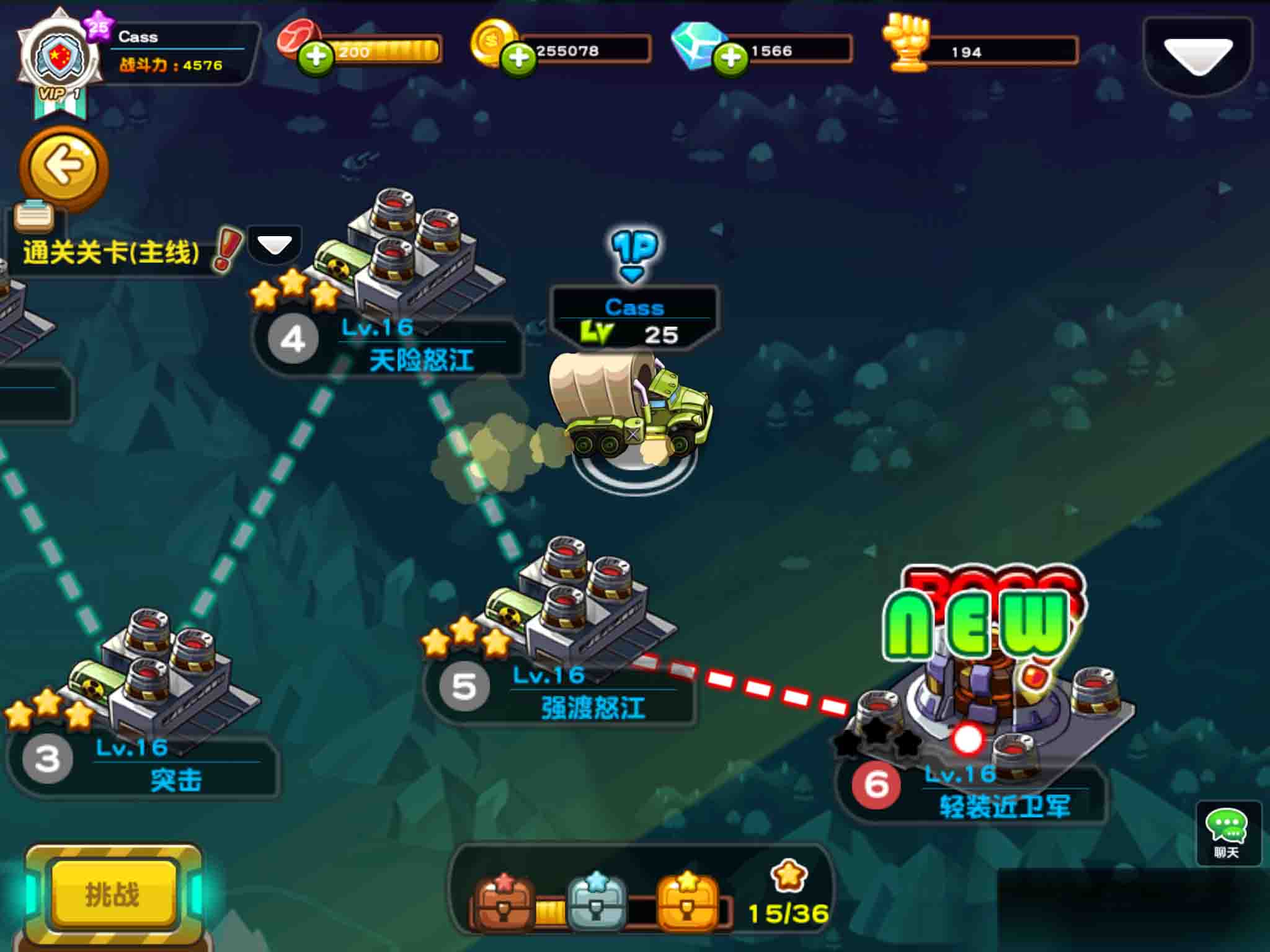 《萌军敢死队》的选关界面设计颇费了一番心思,一个降落伞会将卡车空投在地图上!卡车中满载着你的部队,它会随着你的手指在地图上跑来跑去,动作非常可爱。