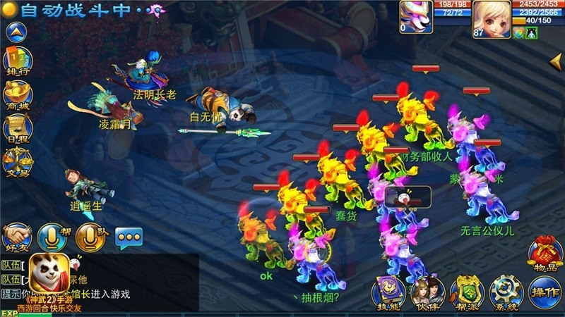 看完了队伍里的玩家,那么接下来就该看看队伍里的宠物了。首先宠物酷炫的外形,就是一道靓丽的风景线,通过宠物染色玩家可以打造出符合自己心意的形象各异的宠物,通过上场的不同宠物,我们可以初步判断宠物的功能:龙虾骑士、深渊海马、死亡骑士等一般是物攻宠物,水灵、九头鸟等一般是法功宠物,而特殊宠物神兽、珍兽等则可能带有更多变的技能组合。最重要的是最近上线的三大新宠将会有更多出场的机会,它们将如何改变战局,让我们拭目以待!