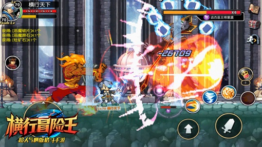 《横行冒险王》是蜗牛游戏2015年自韩国代理的超人气横版格斗手游,在继承日韩格斗游戏街机控制感和精准打击判定等领先技术的基础上,全方位提升触、听、视三觉感受,并且国服领先版曾一度引发大量外服玩家回归国服的盛况;突破性开创战魂必杀特色系统,300战魂百变组合,五段必杀由你原创;无锁定实时混战,浮空、反击、侧滑让你体验无限连击拳拳到肉;20大个性职业任你自由扮演,战魂共享一键切换;同时还原经典横版组队冒险,融合海量机关地形;更有修罗之路、霸王之途等多种趣味玩法,让你成为米德加尔德大陆新的救世主!