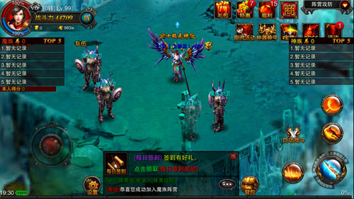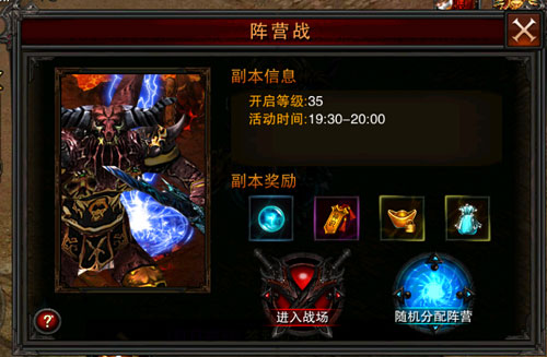 正如各位玩家所言,阵营战必将激烈空前、规模庞大,收获大量金币元宝已不在话下,万人同场屠战更是超爽热血体验!各位玩家可在每日19:00-19:30活动期间,通过土城阵营战NPC进入战场,随后经系统自动分配到对战双方——神族、魔族阵营。分配完毕,激动人心的阵营大战便即刻开始!是分批分路逐步进军歼灭敌人固有力量,还是针对最强战士持久作战攻破强力屏障,一切都由你决定!