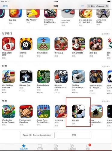 图1:《魔足学院》荣登IPad端体育类游戏精品推荐第五