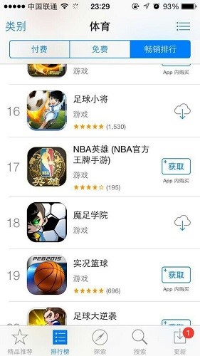 图2:《魔足学院》荣登iPhone端体育类畅销榜第十八名