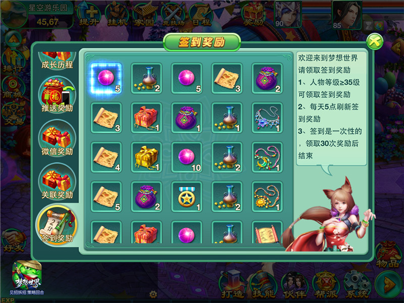 本次新服风花雪月开启,《梦想世界》手游还准备了七重豪礼迎接新老玩家。分别是新手礼包、签到礼包、升级大礼包、活跃大礼包、2980邮箱礼包、公众号大礼包和首充优惠大礼包,七大豪礼相送,谱写浪漫乐章。