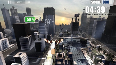 在游戏中,玩家们将扮演一架救援机的驾驶员,在末日来临之前尽可能的拯救散失在城市中的居民,不过燃料之足够坚持五分钟,所以玩家们在五分钟中快速寻找到居民,并拯救他们。游戏的整体玩法流程很简单明了,但是在操作方面却并不是那么简单,玩家要左右开弓,左手控制飞机的引擎,右手控制方向,在救援的同时也要回避各种复杂的建筑,要做到这个基础上才可以顺利拯救到民众,否则只是白费力气。