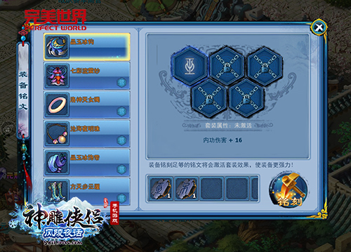 临安城的老板最近进了一批奇怪药材,上面刻有奇怪文字,武器店老板将这些文字刻印在铁片上,发现可以极大地增强装备实力……《神雕侠侣》手游加入全新装备铭文系统,玩家等级大于70级后,即可开启此项功能,为你的装备附刻专属铭文,提升各项属性。值得一提的是,在玩家镶刻指定铭文后,还将触发“铭文套装效果”,让你的装备更上一层楼!