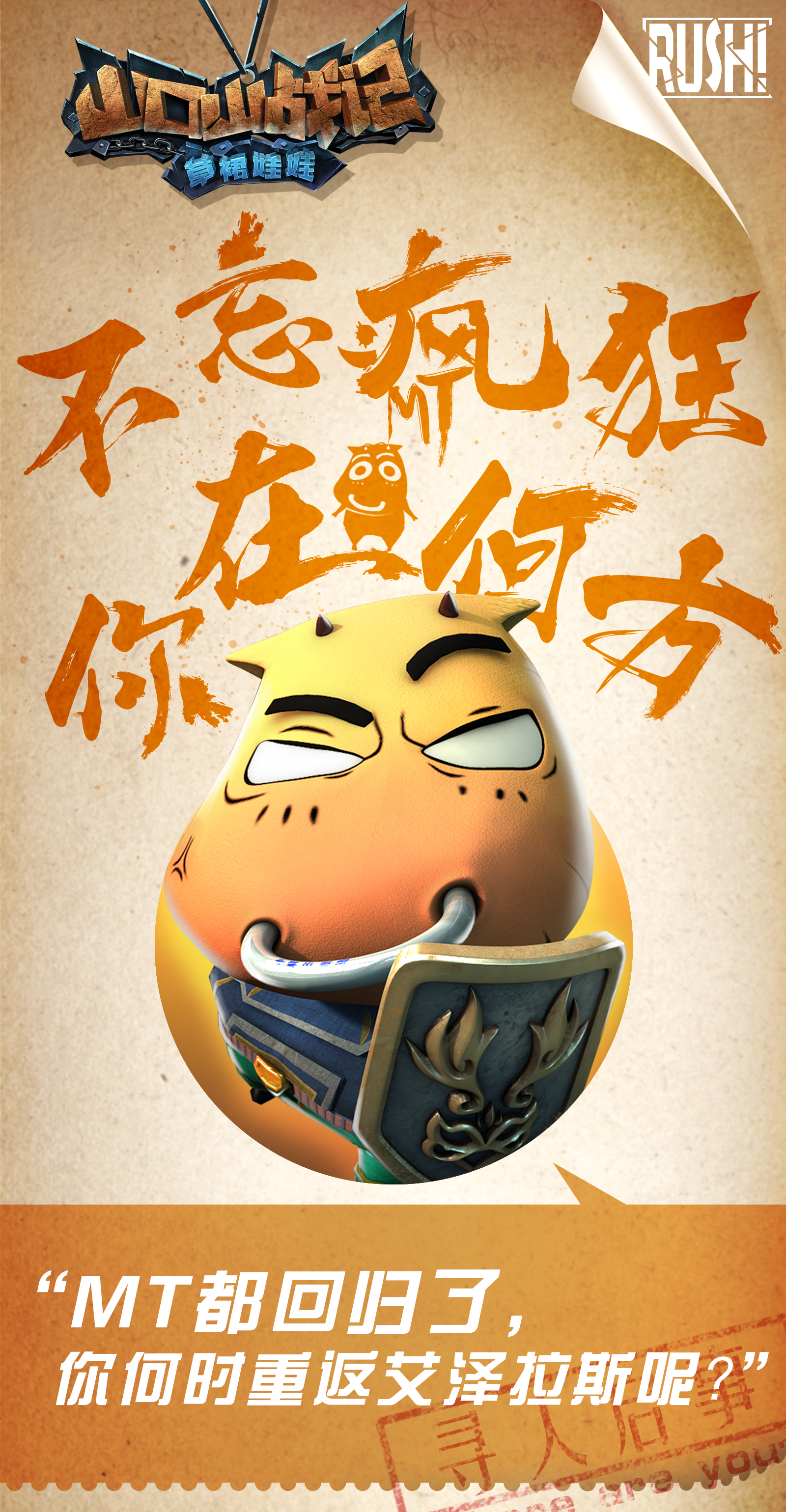 正如《山口山战记》粉丝的留言一样,很多人没有忘记曾经一起追MT动画、一起打游戏的伙伴与战友,他们只是丢失了各自的联系方式。《草裙娃娃》完结之后,《山口山战记》官方发起了“不忘疯狂 你在何方”主题活动,帮助粉丝寻找失散的战友。主题“不忘疯狂 你在何方”也是《草裙娃娃》大结局插曲《沙塔斯月光》最动人的一句歌词。