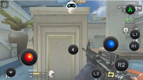 这里将左摇杆设置成移动,右摇杆设置成视角移动、R2进行射击,整个过程流畅、无卡顿,不需要再手忙脚乱的考虑操作体验,用户体验直接上升1个档次。